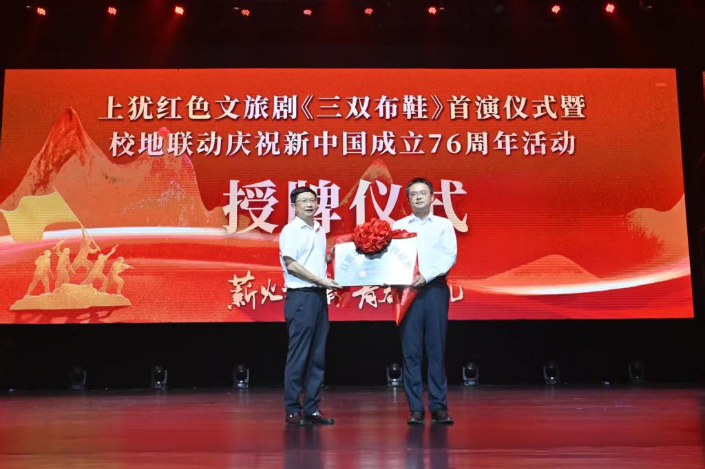 9月30日晚,上犹县在赣南师范大学隆重举办红色文旅剧《三双布鞋》首演仪式暨校地联动庆祝新中国成立76周年活动。学校党委书记、校长张小康,党委常委、组织部部长徐华平应邀出席,师生代表120余人参加活动。