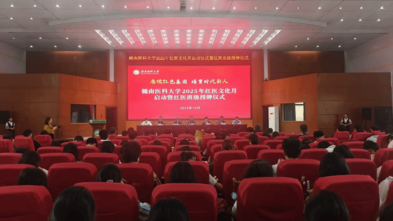 10月20日下午,我校2025年红医文化月启动仪式暨红医班级授牌活动在蓉江校区举行。学校党委副书记黄瑞忠,党委常委、宣传部部长廖志平,党委常委、统战部部长赖传景,党委常委、组织部部长徐华平出席活动,各职能部门负责人、各学院分管领导及300余名师生代表参加。