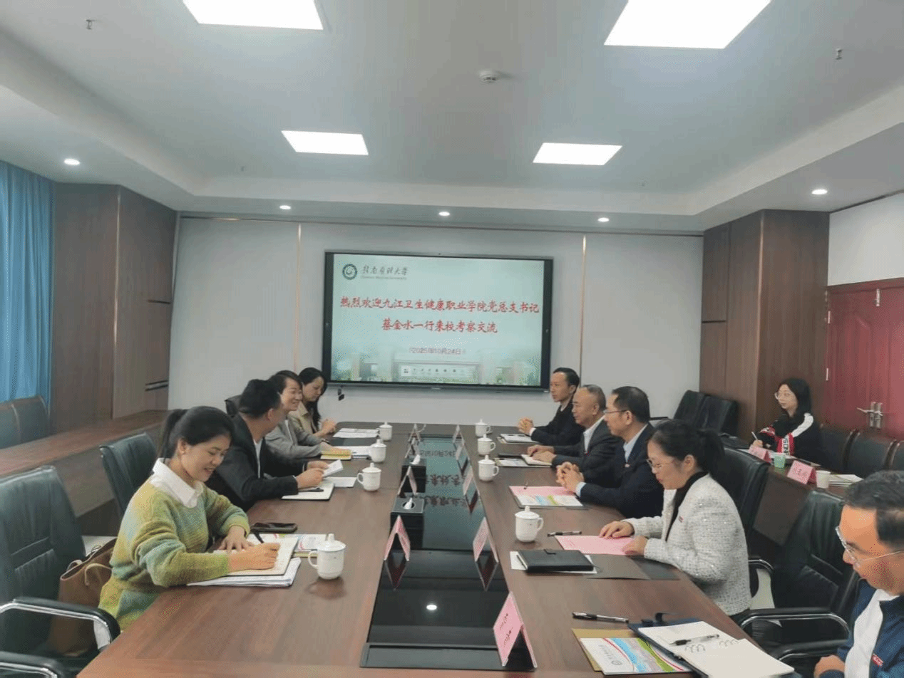 10月24日,九江卫生健康职业学院党总支书记蔡金水一行到校考察交流。学校党委书记张小康陪同参观红色卫生史博物馆。学校党委副书记黄瑞忠陪同并出席座谈。