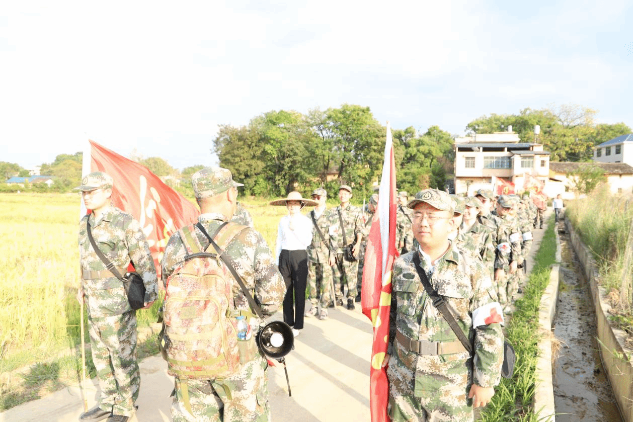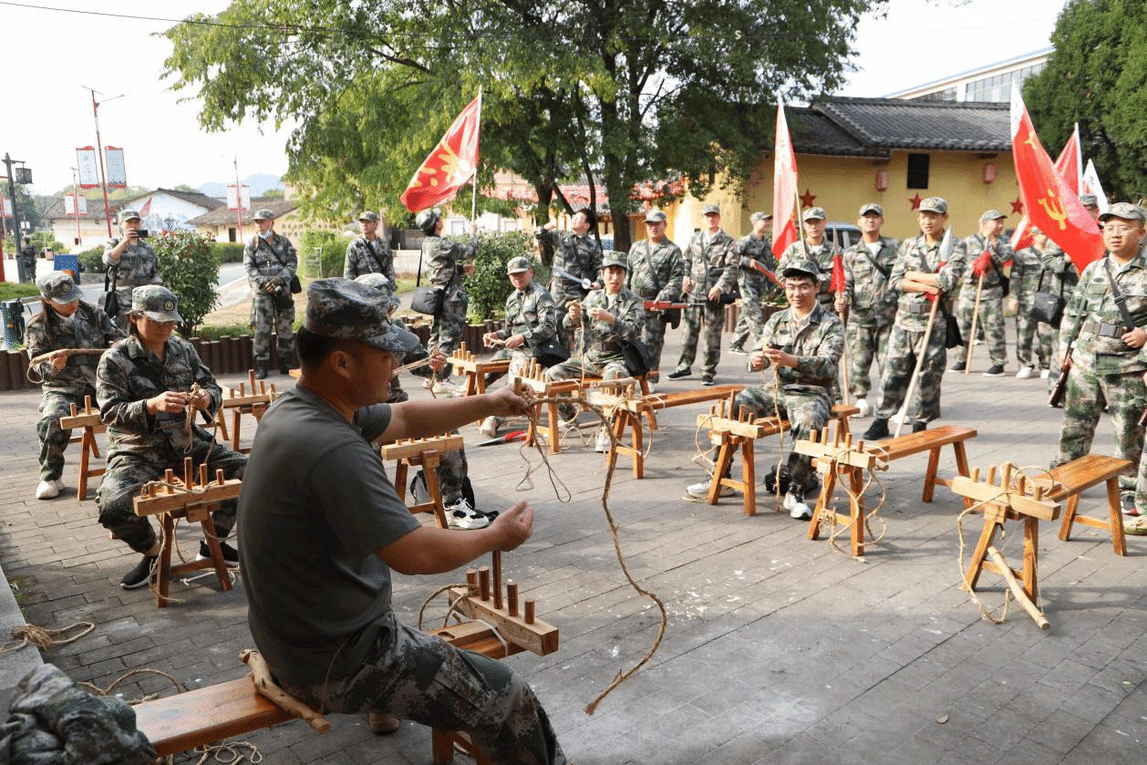 培训最后一站来到被誉为“长征第一山”的云石山,一场沉浸式的“续走新时代长征路”体验教学正式开启。学员们身着迷彩服,肩扛药箱,手中紧握大刀、长矛与木质步枪,分组开展“红军大练兵”与“编制红军草鞋”体验教学,在长枪队、大刀队的训练中锤炼意志,在一针一线的编织中感悟红军长征的艰辛。随后在飘扬的鲜红军旗引领下,沿着当年领袖与红军将士走过的山间小径稳步前行,行至马道口中央政治局旧址时,模拟长征出发前动员大会,重温红军长征的壮志豪情。
