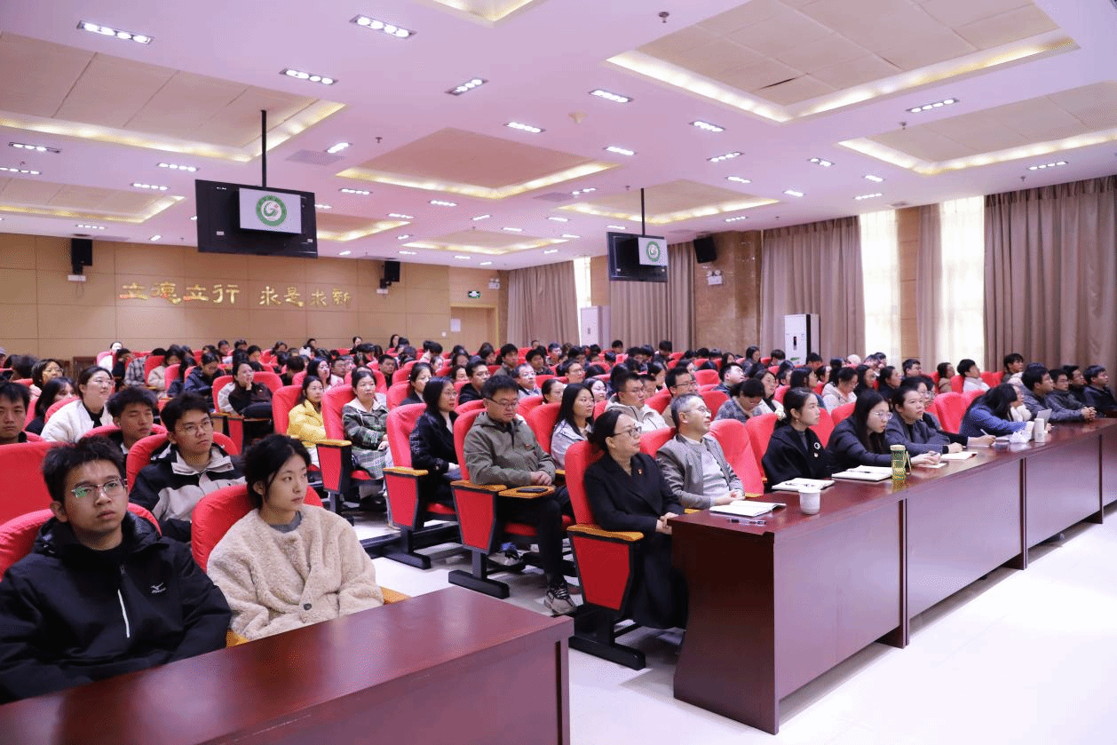 马克思主义学院、公共卫生与健康管理学院全体教师和学生代表一同在场聆听。