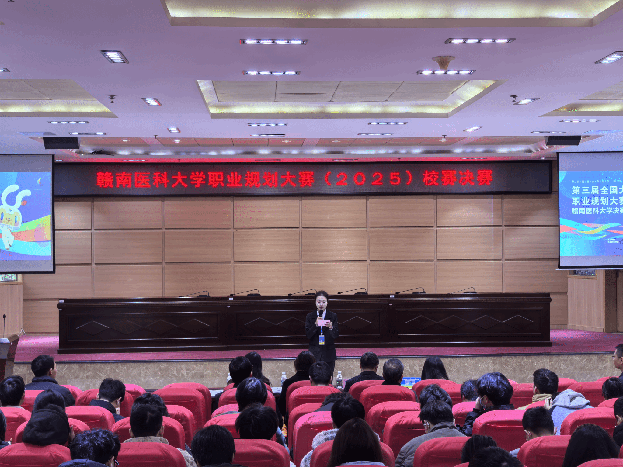 1月5日,第三届全国大学生职业规划大赛赣南医科大学校赛决赛在蓉江校区举行。学校党委常委、副校长黄孝天出席活动并致辞,来自高校、企业的资深职业规划专家担任评委,相关部门负责人及各学院师生代表共计160余人参加。