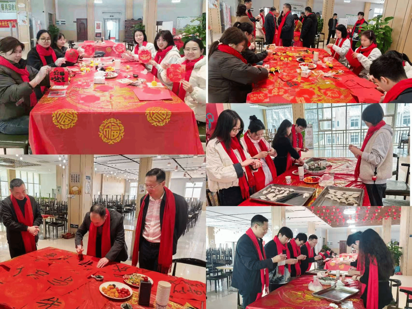 学校还精心设置温情满满、年味十足的年俗体验环节,在场师生们热情参与到写福字、拓福字、剪窗花、包饺子等传统年俗活动中。
