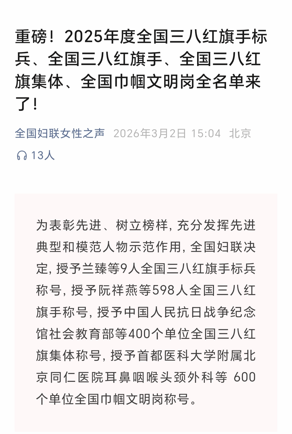 学校党委始终高度重视妇女工作,深入学习贯彻习近平总书记关于妇女儿童和妇联工作的重要论述精神,坚决贯彻落实党中央和省委关于促进妇女事业发展的各项决策部署,将支持女性发展纳入学校事业发展总体规划。我校持续完善女性人才培养机制,畅通女性职业发展通道,保障广大女性合法权益,努力营造有利于女性建功立业的良好环境。此次基础医学院生物化学与分子生物学教研室获评“全国巾帼文明岗”,正是我校选树女性先进典型、发挥示范引领作用的重要体现。