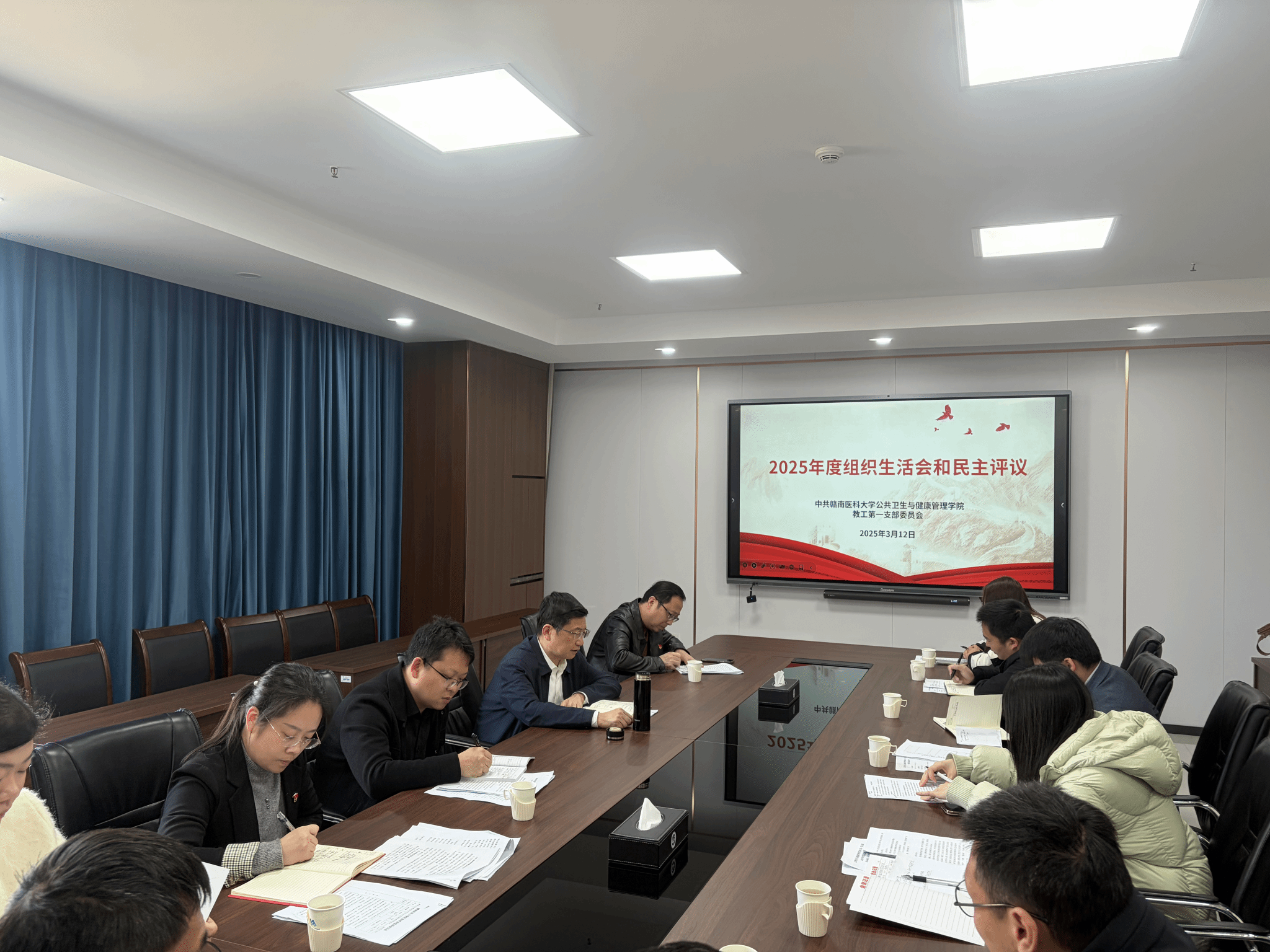 3月12日,学校党委书记、校长张小康以普通党员身份,参加其所在的公共卫生与健康管理学院教工第一党支部2025年度组织生活会,并同党支部党员一起交流学习体会,查找差距不足,深刻剖析原因,明确整改措施,开展民主评议党员。该院党委副书记曾发挥列席并作点评。