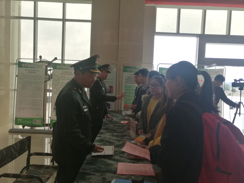 1月5日上午,赣州市征兵办在我校举行2019届大学毕业生“携笔从戎绽放青春”征兵宣传活动启动仪式。学校人民武装部、党委宣传部、校团委负责同志出席,各学院2019届毕业生代表参会。学校人民武装部部长王小敏主持仪式。
