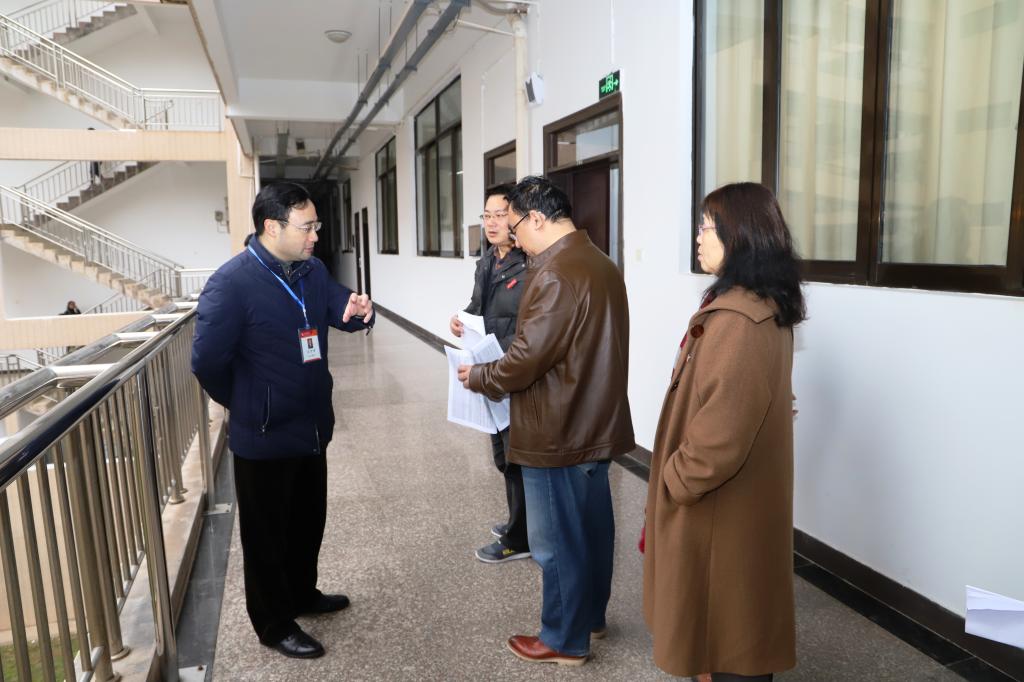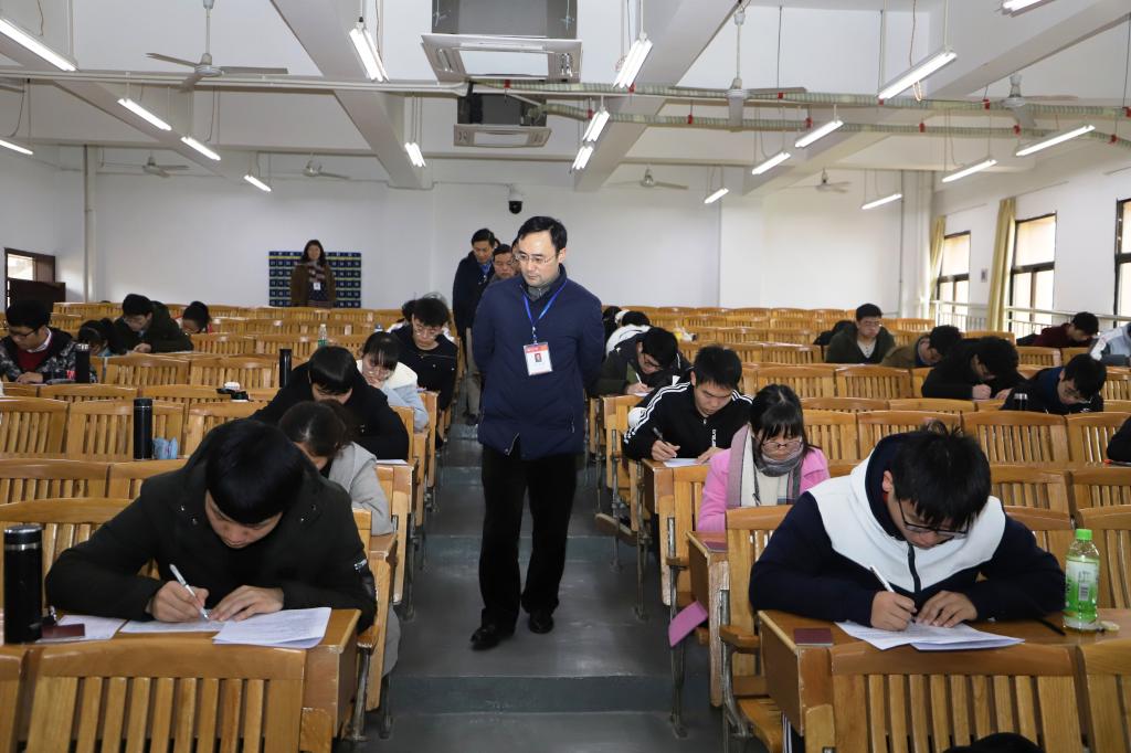 1月16日上午,学校党委副书记、校长刘潜在教务处、高教研究室、学工处、人文社科学院、信息技术与网络管理中心等负责人的陪同下,深入黄金校区期末考试考场,检查指导考试和考务工作。