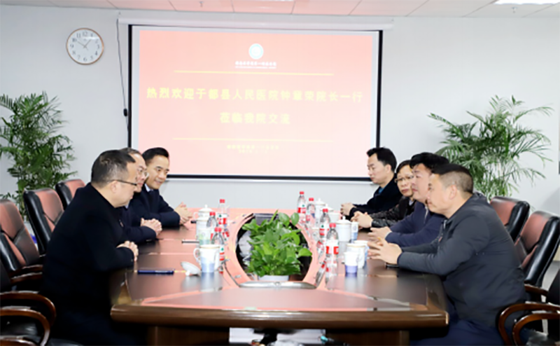 叶军明首先代表医院致辞,邹晓峰简要介绍医院工作情况,并就人才队伍、专科建设、新技术推广等方面的帮扶进行交流。同时两院还就对口支援方式、学科建设、DRGs等内容进行了深入交流。