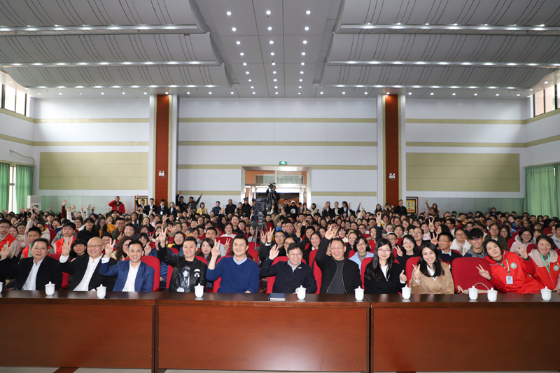 从年少时的摇滚青年,到影视之星,再到文化创业人的转化,李亚鹏感人励志的故事、诙谐幽默的语言引起在场师生强烈共鸣,现场掌声不断。李亚鹏那一颗仁心,那感人的善举,让更多的社会弱者得到帮助,不但治愈他们的身体,更治愈内心和家庭,他所带来的满满正能量感动了在场的每一位听众。