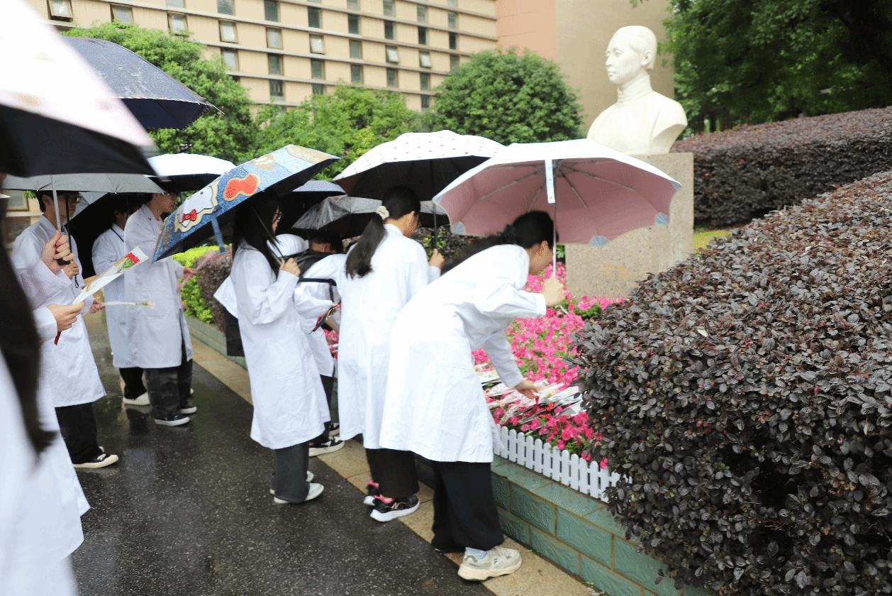 仪式最后,130名医学生庄严宣誓,与会人员依次向熊慬校长雕像献花。