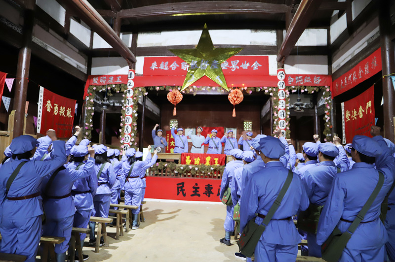 在前往瑞金途中,学员们分组高歌《十送红军》《毛委员和我们在一起》等红歌;在华屋红军村,学员们参观新旧华屋村和村史馆,在村民家同吃同住同劳动,感受改革开放给乡村带来的巨大变化。