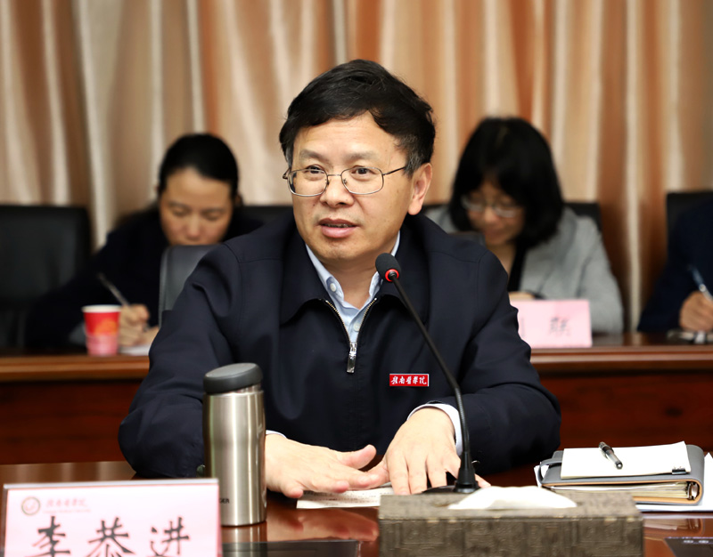 李恭进在讲话中指出,一是要强化政治担当,切实增强扫黑除恶斗争的思想认识。要充分认识到深入开展这场斗争的重要性、紧迫性,强化政治担当,提高政治站位,从维护党和国家的长治久安的角度出发,维护学校校园安全稳定,把扫黑除恶专项斗争工作做实、做好。二是要以问题为导向,切实开展扫黑除恶斗争。要着力开展线索摸排,广泛发动师生检举;要做好宣传发动工作,广大辅导员、班主任要深入班级,宣传发动师生参与;既要查处违法违规行为,又要深挖彻查其幕后是否有黑恶势力、是否有“保护伞”,要对排查出的线索进行剖析分析。对重点领域、重点话题如“校园贷”、校园欺凌、传销、电信网络诈骗、医霸、药霸等进行整治,深挖“保护伞”三是要标本兼治,切实巩固保持扫黑除恶斗争的成果。要完善工作机制,及时调整工作领导小组,制定问题整改方案;要压实责任,加强宣传,营造扫黑除恶的校园氛围;要建立联动机制,加强校地、校企、校警之间的联系,发现问题及时处置、报告。