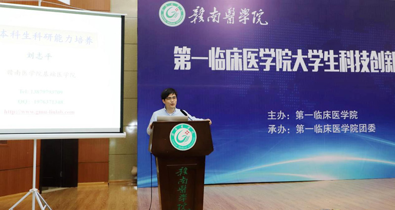 基础医学院副院长刘志平博士应邀作了“本科生科研能力的培养”的专题报告,讲述了自己在教学、培育学生参与科研创新的实践及其科研团队取得的成果。