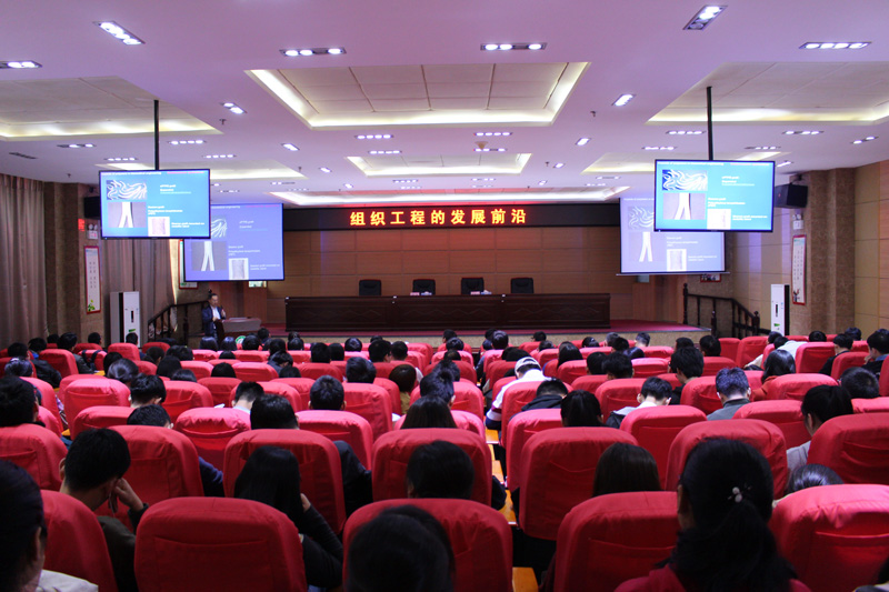 59,美国宾夕法尼亚州立大学杨健教授应邀来我校讲学,作了题为“组织工程的发展前沿”的讲座。学校副校长张小康、彭维杰及200余名师生到场聆听。