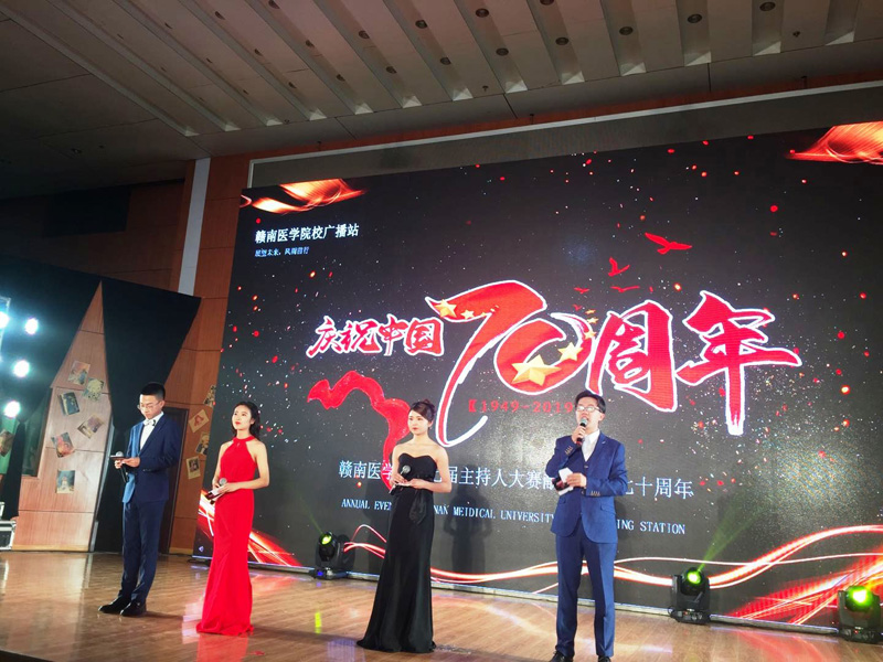 5月10日晚,“时代谱新篇——庆祝建国70周年”第七届校园主持人大赛在黄金校区火热上演。学校党委宣传部负责人,基础医学院、康复学院等师生代表300余人观看比赛。