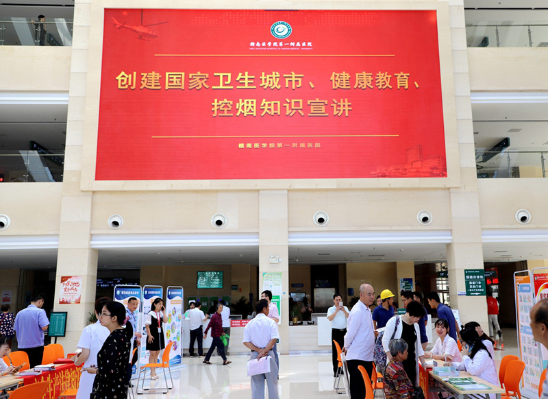 今年6月是全国第18个“安全生产月”,也是赣州市创建国家卫生城市的关键节点。为向广大患者和全院干部职工倡导“生命至上、安全发展”的安全价值观,增强创建国家卫生城市和健康知识, 6月14日,我校一附院在黄金院区门诊大厅开展安全生产宣传咨询日暨创卫、健康教育、控烟知识宣讲活动。