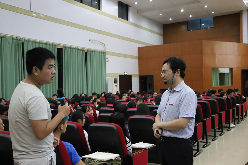 刘潜与同学们热情互动,积极引导同学们发表观点,并给予鼓励和肯定。他从社会发展规律的角度引导大学生充分认识新时代坚定不移坚持改革开放的必要性。谈到爱我赣医,刘潜指出,赣医每一位学子都应有较强自制力,懂得自己想要什么,明白自己在为什么而努力,同时,我们要传承赣医精神,遵循赣医校训,不负韶华,认真学习,全方面的培养个人能力,提高自身素养,为赣医争光。