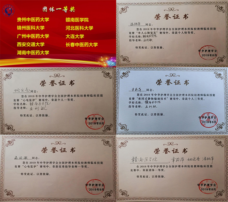 8月2日,由中华护理学会主办,福建医科大学承办的2019中华护理学会全国护理本科院校教师临床技能大赛在福州开赛。我校温艳萍、姚宏亮、幸莉萍三位参赛教师,凭借深厚扎实的理论功底、娴熟规范的操作技能、沉着冷静的现场应对,默契合理的团队配合得到评委的一致好评,在92支参赛队中脱颖而出,以总分排名第六的优异成绩斩获团队一等奖。其中,温艳萍老师获心肺复苏单项特等奖,姚宏亮老师获心电监护单项一等奖,幸莉萍老师获静脉输液单项三等奖,孟利敏老师获优秀指导老师特等奖和一等奖。