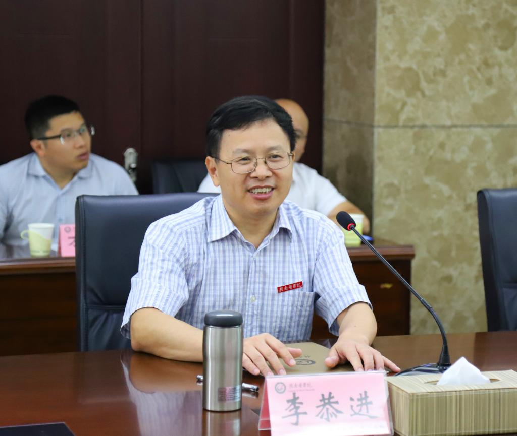 李恭进首先致辞,热烈欢迎李戎教授一行的到来,诚挚感谢李戎教授对学校的关心和支持,在简要介绍赣南红色历史和学校发展概况后指出,赣南医学院办学七十余载,共培养了6万多名毕业生,服务于江西乃至全国各地,但学校的发展仅靠育人是不够的,还必须要有科研的支撑。期望通过与江苏瑞思坦的合作,能够发挥教学与科研、科研与临床相结合的优势,为造福人民健康、建设健康中国作出新的贡献。