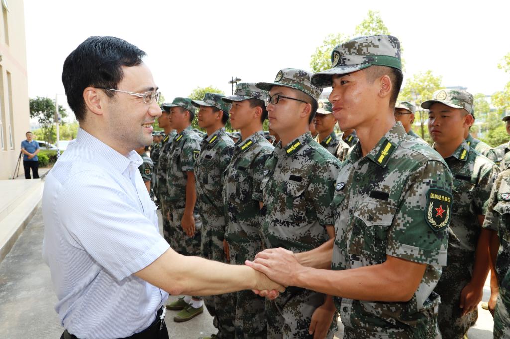 近日,学校党委副书记、校长刘潜来到黄金校区运动场看望我校正在开展暑期强化训练的学生军训教官。