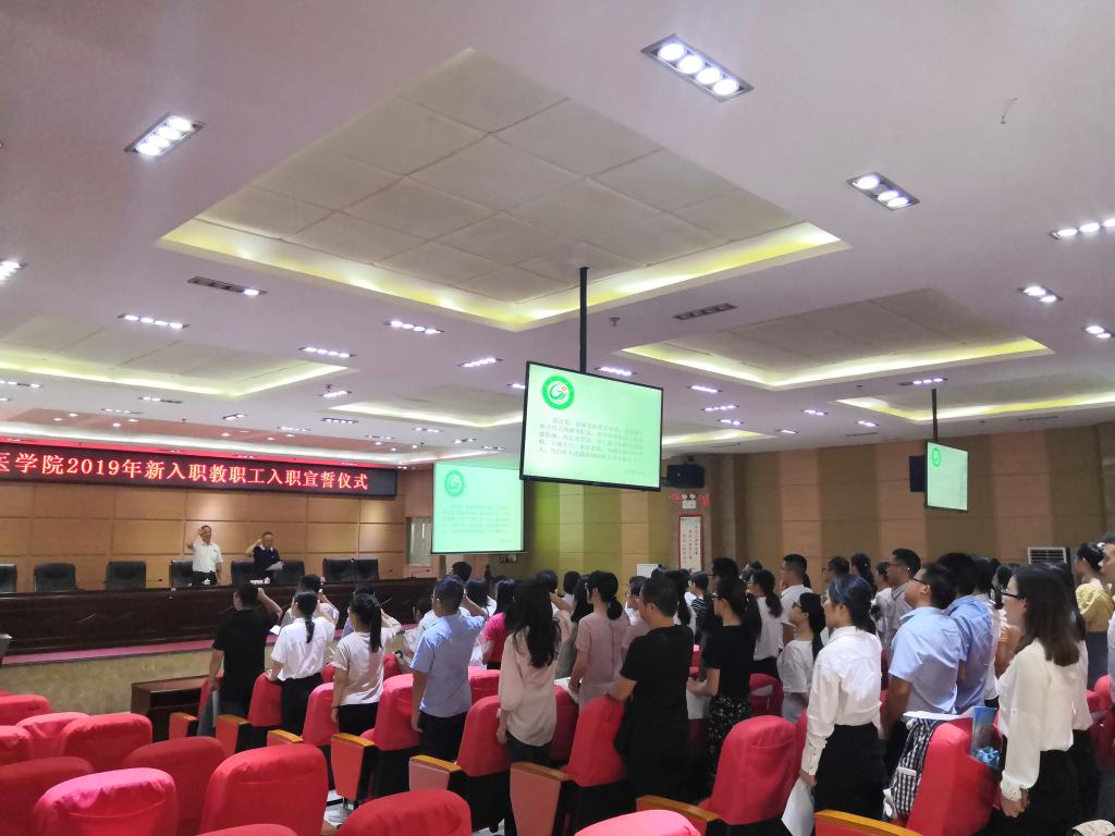 在人事处处长黄春平带领下,全体新教师庄严宣誓:“忠诚党的教育事业,切实履行教书育人的神圣职责。做有理想信念、有道德情操、有扎实学识、有仁爱之心的人民教师;立德立行,求是求新,为赣医的美好明天,为办好人民满意的医科大学不懈奋斗!”