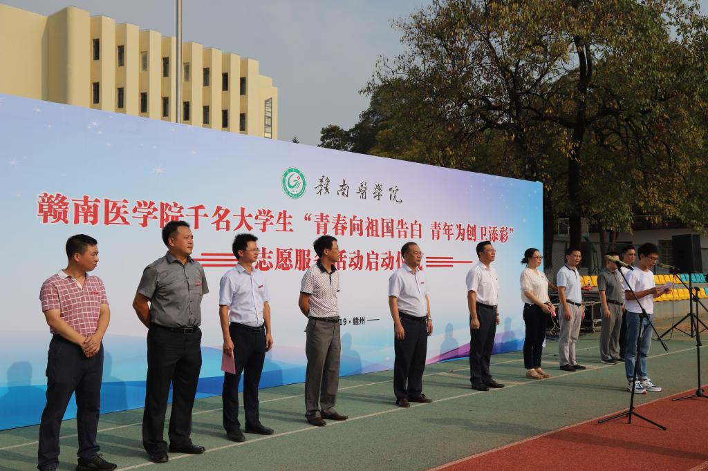 9月15日上午,学校党委副书记曾泽鑫、党委委员、副校长叶军明,党委宣传部、学工部(处)、校团委、后勤服务集团等部门负责人,以及相关二级学院分管领导及1000余名赣医学子在章贡校区运动场签名宣誓,开展以“青春向祖国告白 青年为创卫添彩”为主题的创建国家卫生城市文明实践志愿服务活动,以实际行动践行社会主义核心价值观,向即将到来的中华人民共和国成立70周年国庆日献礼。