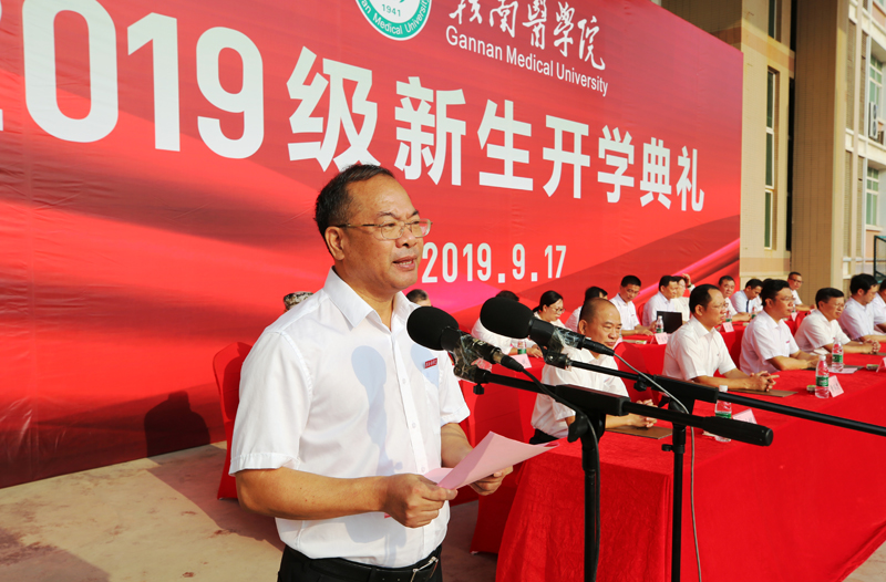 金秋送爽、丹桂飘香。9月17日上午,我校2019级新生开学典礼在黄金校区举行。学校领导李恭进、刘潜、曾泽鑫、陈亮、黄瑞忠、肖树辉、张小康等出席,学校党委委员、副校长叶军明主持典礼。