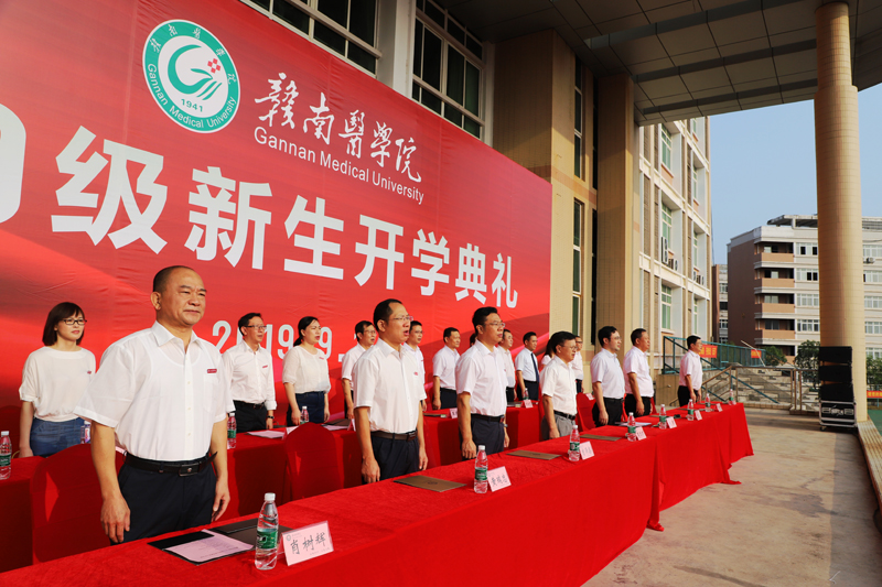 开学典礼在庄严雄壮的国歌声及全体2019级新生精彩的军体拳表演中正式拉开帷幕。