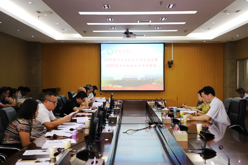 招生与就业管理处处长陈联娇汇报了2019届毕业生总体就业情况,分析了2019届毕业生就业工作中存在的问题,并就做好2020届毕业生就业工作做了安排和布置。