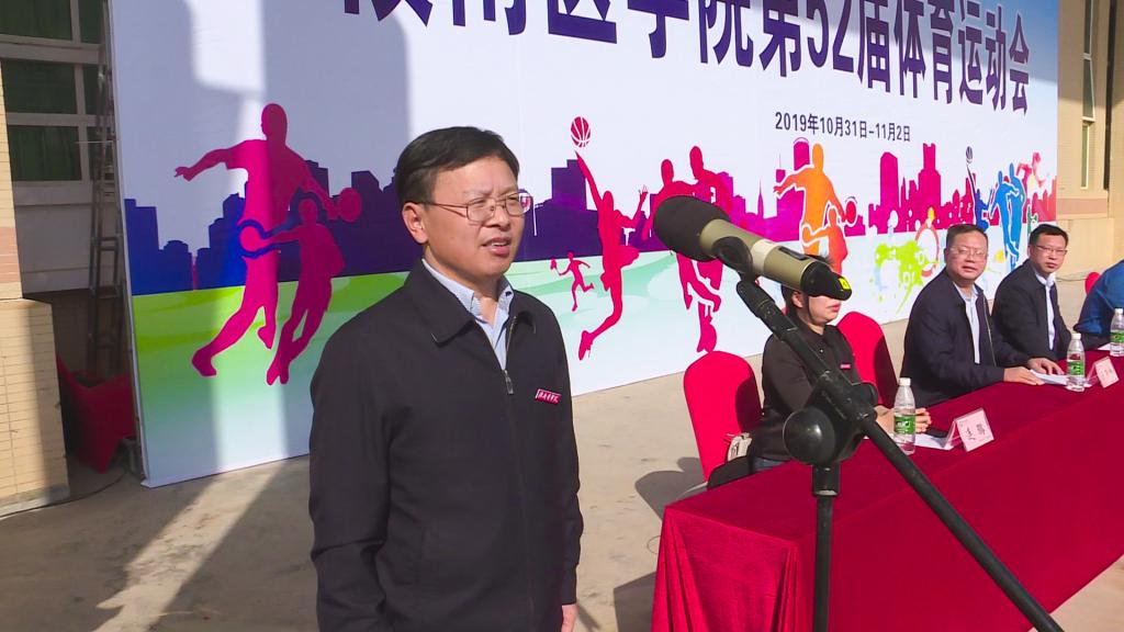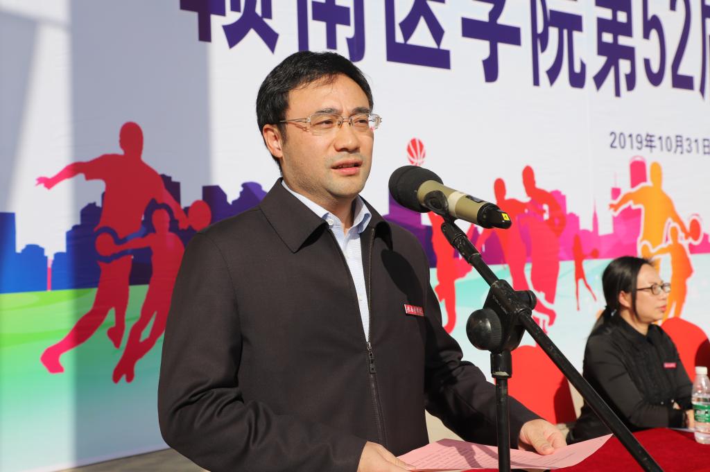 体育如花,绽放美丽校园;运动似火,点燃健康人生。10月31日上午,我校第五十二届运动会开幕式在黄金校区田径运动场举行。学校领导李恭进、刘潜、曾泽鑫、陈亮、黄瑞忠、叶军明、肖树辉、张小康、彭维杰以及工会、团委、学工处、教务处、康复学院负责同志出席开幕式并在主席台就坐。党委委员、副校长叶军明主持开幕式。