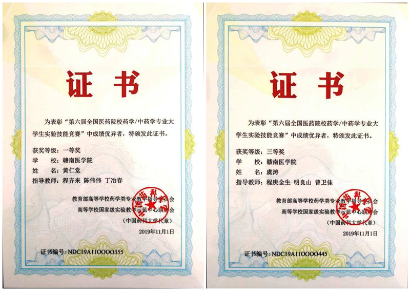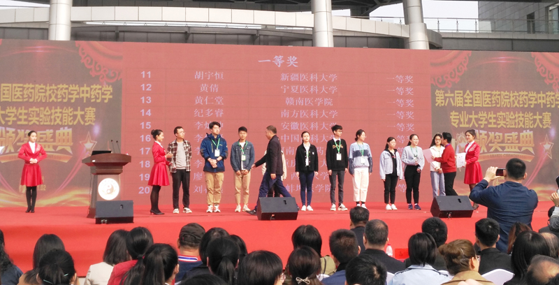 大赛由教育部高等学校药学类专业教学指导委员会主办,自今年6月启动以来,历时5个多月,1031日至112日在河南中医药大学药学院顺利举行。大赛共有来自北京大学、武汉大学、四川大学、厦门大学等120多所高校700多名师生参与。大赛分实验理论笔试和实验技能操作两部分,经过两轮激烈比拼,由我校药学院教师程齐来、程庚金生带领的2016级药学专业学生黄仁堂、虞涛分别荣获大赛一等奖和三等奖,充分展现了我校大学生扎实的实验理论水平和动手操作能力。