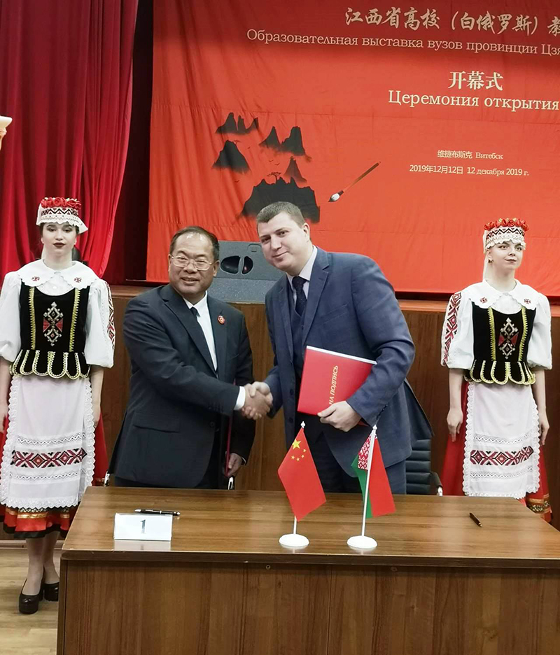 12月12日,2019年“江西高校(白俄罗斯)教育展”在白俄罗斯维捷布斯克国立大学开幕,叶军明在开幕式上发言,并与维捷布斯克国立医科大学、维捷布斯克国立兽医学院及奥尔沙国立医学院等3所高校签署合作协议。