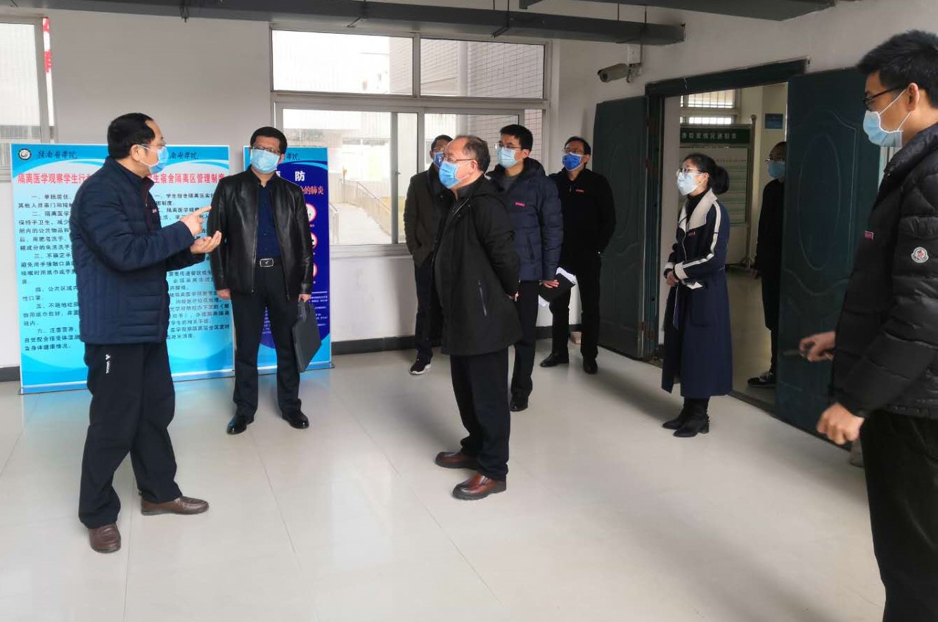 2月20日,全省教育系统防控新冠肺炎疫情决策部署落实情况第二轮专项督查组长、省教育厅师资处副处长钟国芳,省学校后勤与产业办公室副主任徐炜、省学生资助管理中心科长金维一行3人到校检查疫情防控工作。学校党委副书记、校长、疫情防控工作领导小组组长刘潜陪同。