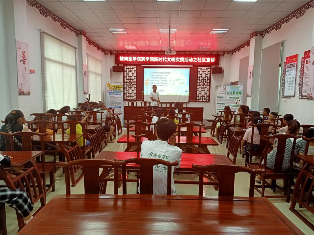 7月29日-30日,我校闪“药”青春志愿服务队来到瑞金市红都社区、八一社区开展防溺水、防疫和急救安全知识,垃圾分类知识宣讲活动。社区工作人员、居民共计100余人次参加。