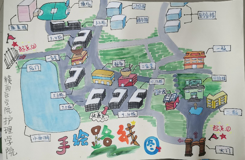 我是一名普通的赣医学子,这份手绘地图是我对赣医的守望,也是对萌新们的守望,更是源自于赣医对我们的守望,我希望这份地图的“手望”能让萌新们更加了解我们美丽的赣医,同时用我们的“手望”让赣医更加美丽!