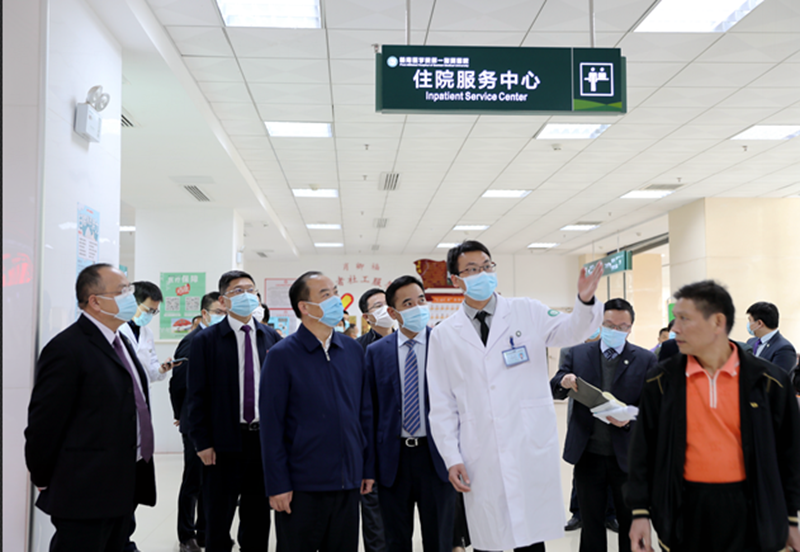 10月9日,省卫生健康委党组成员、副主任龚建平一行到一附院调研改善医疗服务、高质量发展等工作,学校党委副书记、校长刘潜,党委委员、副校长兼一附院党委书记张小康,省卫健委医政医管处处长朱世鸣,赣州市卫健委调研员方惠清,一附院党委副书记、院长邹晓峰及在家院领导等陪同调研。