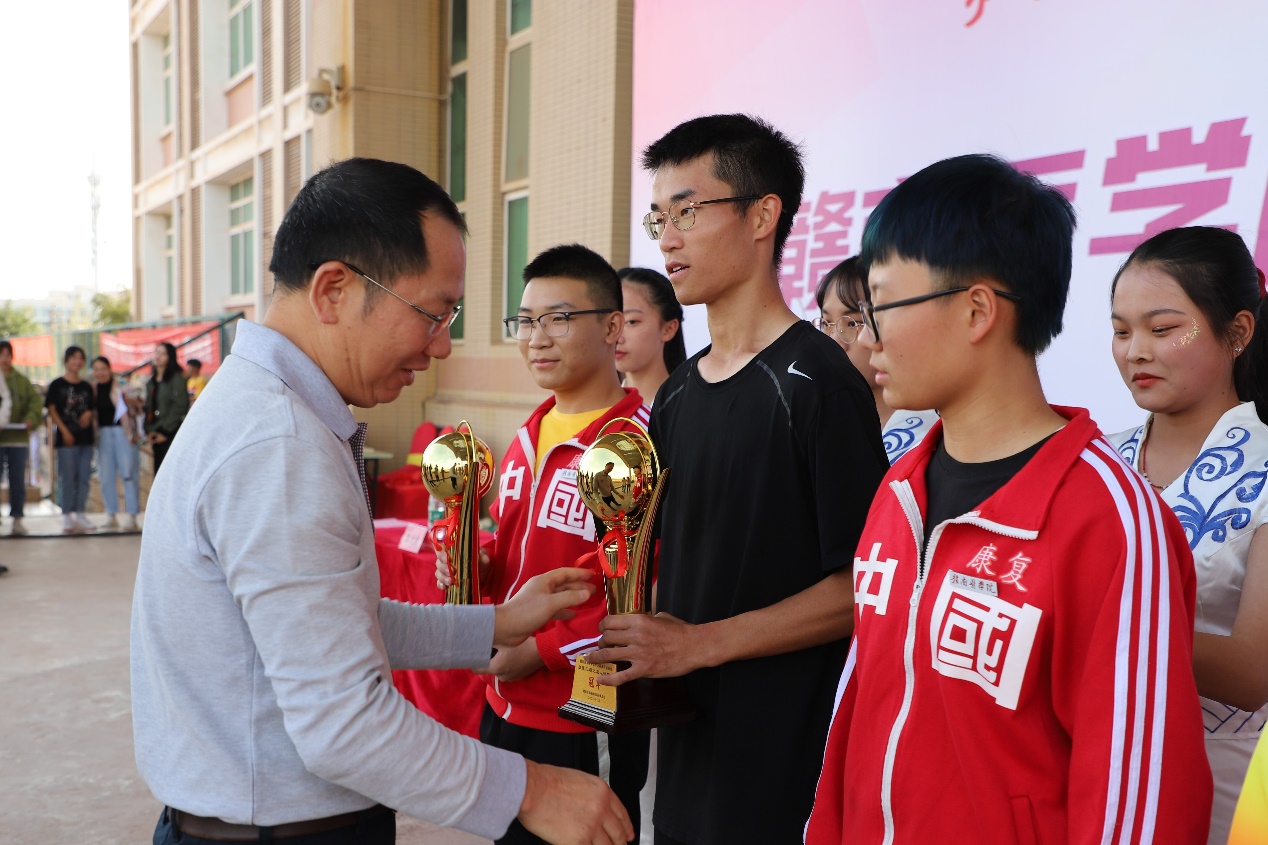 组委会主任委员为各团体奖项颁奖。基础医学院564分、第一临床医学院312分、护理学院277分,分列学生组团体总分前三名,康复学院代表队金牌24块、机关代表队金牌11块、第一附属医院代表队金牌10块,分列教工金牌总数前三甲。