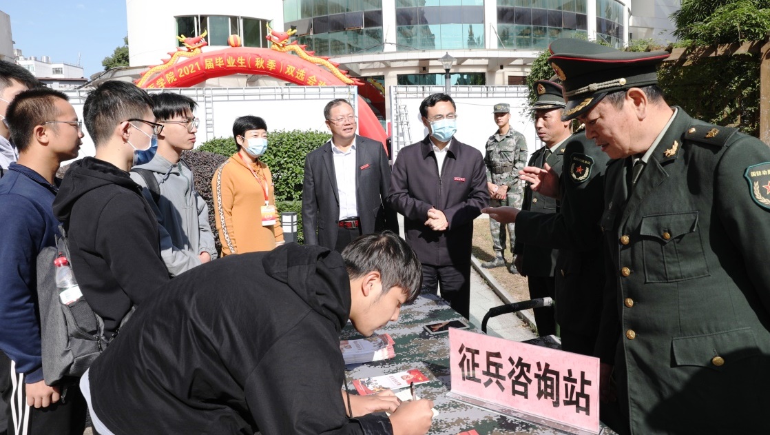 10月24日,赣州军分区征兵办、章贡区征兵办会同我校人民武装部在章贡校区开展征兵宣传进校园活动。学校党委副书记、校长刘潜到场指导征兵宣传工作。