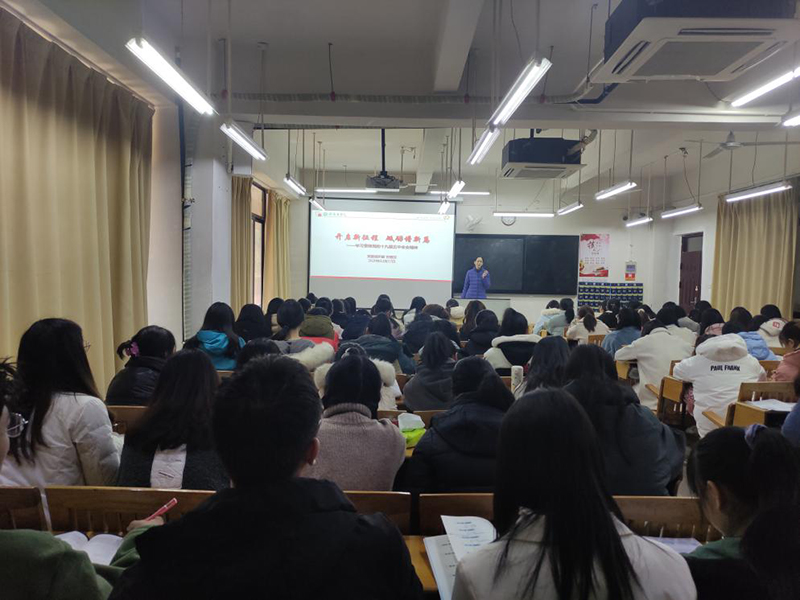 12月17日上午,学校党委委员、组织部部长甘雅芬为护理学院学生第二党支部及班级学生宣讲十九届五中全会精神。