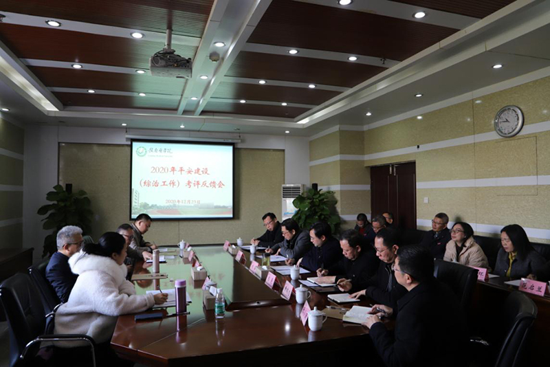在考评反馈会上,考评组对学校平安建设工作给予充分肯定,认为学校高度重视平安建设工作、经费保障到位、基础工作扎实、材料准备齐全,同时对发现的问题提出了意见建议。刘潜在表态发言中对考评组一行的悉心指导表示感谢,强调学校将对考评中发现的问题逐条逐项整改,并举一反三,补齐短板,改进不足,努力建设更高质量的平安校园。