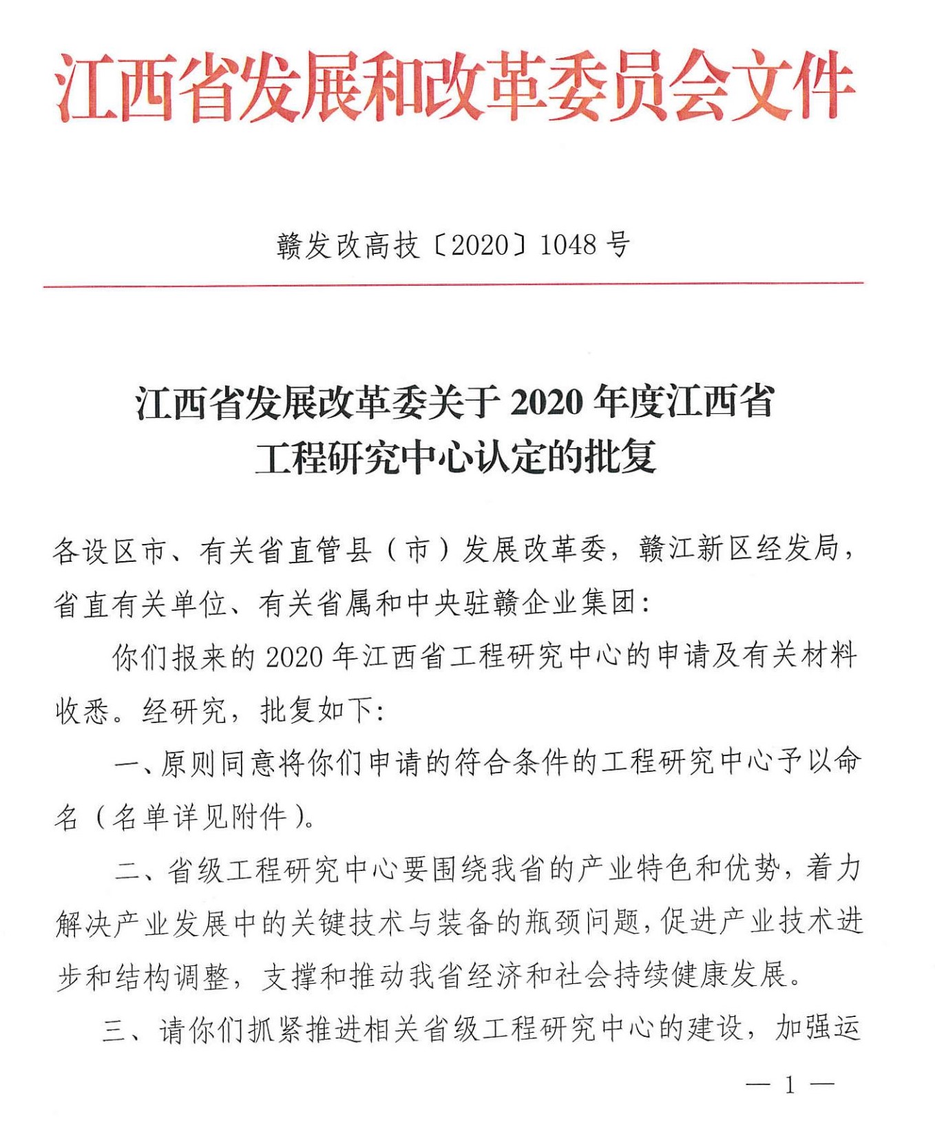 近日,江西省发展与改革委员会下发关于同意江西省工程研究中心认定的批复。其中,我校一附院申报的“江西省人体音频信号智慧医疗工程技术研究中心”榜上有名。