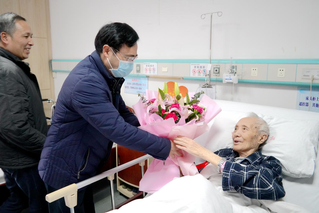 党委副书记、校长刘潜深入第一附属医院病房,看望了离休老干部郑熹和“感动的中国年度人物”、优秀校友肖卿福,详细了解诊疗情况,鼓励他们要树立克服困难、战胜病魔的决心和信心,叮嘱他们保重身体,并送上慰问金。刘潜还走访慰问了抗击新冠肺炎先进个人欧阳松茂,并送上节日关怀和新年礼物,祝愿他春节愉快、阖家幸福。在困难职工曾省华家中,与他亲切交谈,询问其家庭生活和身体情况,了解其面临的实际困难,并鼓励他要充满信心地面对生活。