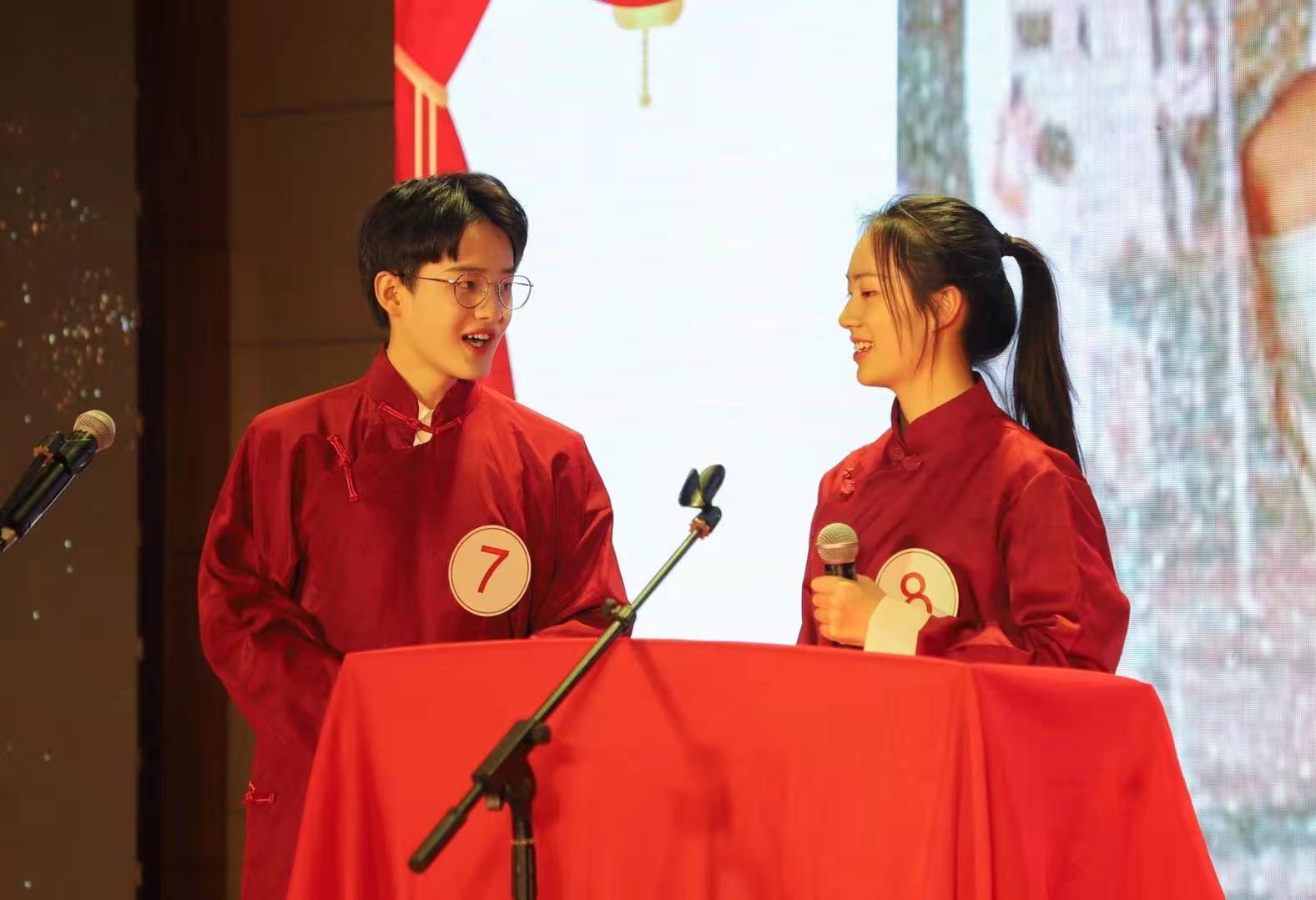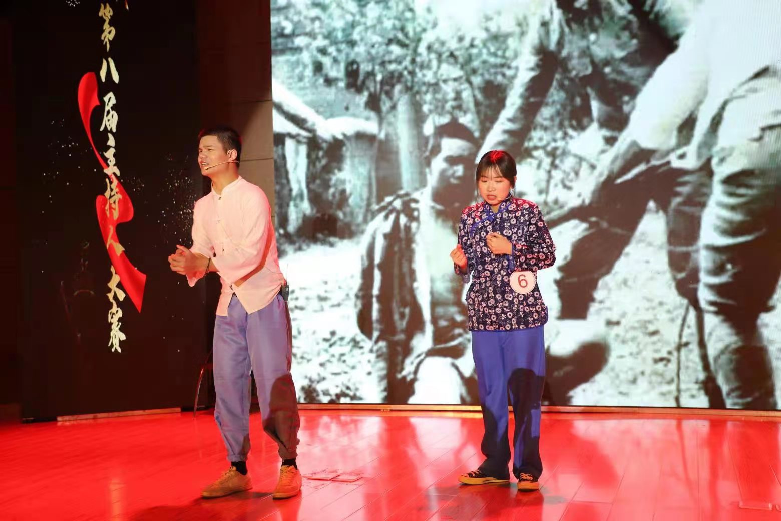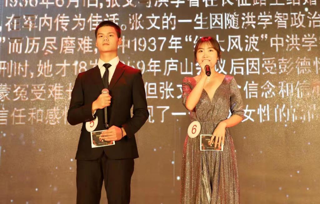 第一组选手张家鸿、史咏梅的模拟主持《红色追忆,百年正青春》庄重大气,沉着稳定。第二组选手叶湘、成馨的舞蹈《枕边童话》舞姿优美,韵味十足。第三组选手仲星洁、谢向阳的情景剧《红布条》极具感染力,催人泪下。第四组选手张骏、邱小芳的时代声音秀《亮剑》角色契合,极具震撼力。选手们的精彩表现赢得观众此起彼伏的掌声。中场游戏《党史提问》通过线上和线下举行,场内外的学生踊跃答题。由党委宣传部融媒体中心带来的合唱《骄傲的少年》和《舞蹈串烧》展示了我校学子多才多艺的精神风貌。