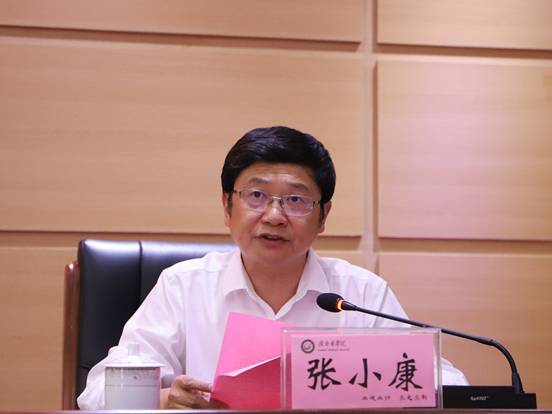 张小康作了表态发言。他表示,要坚决拥护和服从省委决定,衷心感谢组织长期以来的培养和信任,感谢各位领导和同志们的关心和厚爱,自己一定会以新任职为新起点,在今后工作中努力做到:一是提高政治站位,坚决贯彻落实各项决策部署;二是敢于担当作为,努力办好人民满意的医学教育;三是坚持挺纪在前,始终保持清正廉洁的政治本色。在工作中将与班子成员和全校师生一起,大力传承红色基因,继续弘扬学校办学传统,为造就德技双馨的良才,办好人民满意的高水平应用型医科大学不懈努力,绝不辜负组织的重托和全校师生的厚望。