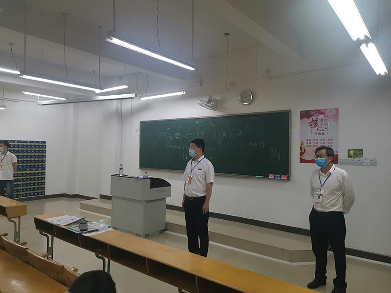 由于参加考试的考生大部分来自其他学校,为避免考生来回奔波领取准考证,今年教务处开发了网上准考证打印系统;为使考生准确了解考试疫情防控相关规定,教务处于考试前一周发布了考生须知,并安排专人解答考生疑虑;为方便考生准确前往考场,教务处在校内道路设置指引路标,并允许考生考前一天实地查看考场;后勤保障中心为考生提供了丰盛的饭菜;学工处在考前开展了考风考纪教育及宣传,营造诚实守信、文明应考的良好氛围。