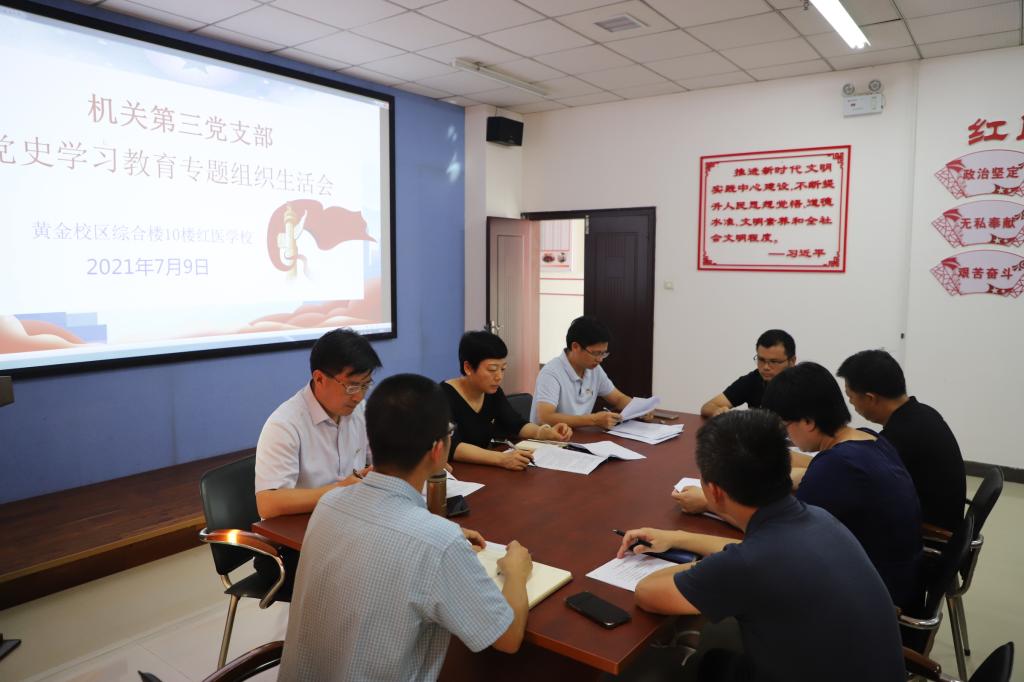 7月9日下午,机关党委第三党支部召开党史学习教育专题组织生活会,支部全体党员参加。学校党委委员、宣传部部长廖志平以普通党员身份参加,机关党委第五党支部书记、学校人事处处长陈联娇到会指导。