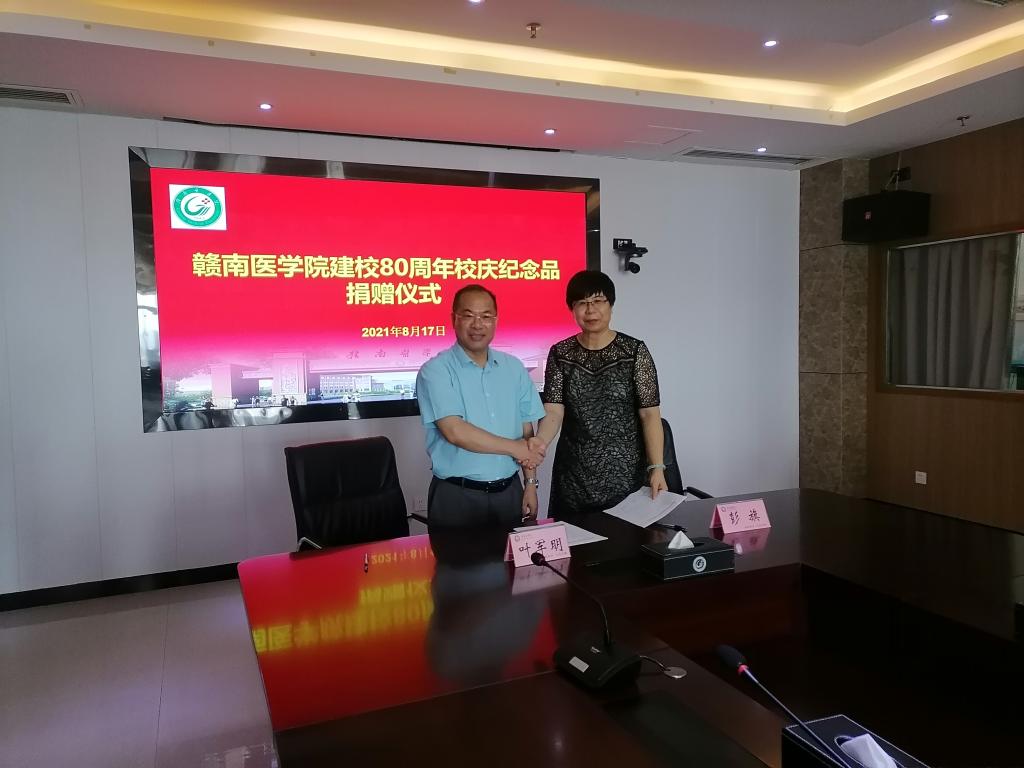 8月17日上午,我校建校80周年校庆纪念品捐赠仪式在黄金校区举行。学校党委委员、副校长叶军明出席仪式并讲话,赣州哈克生物科技有限公司总经理彭旗到校现场签订捐赠协议书。