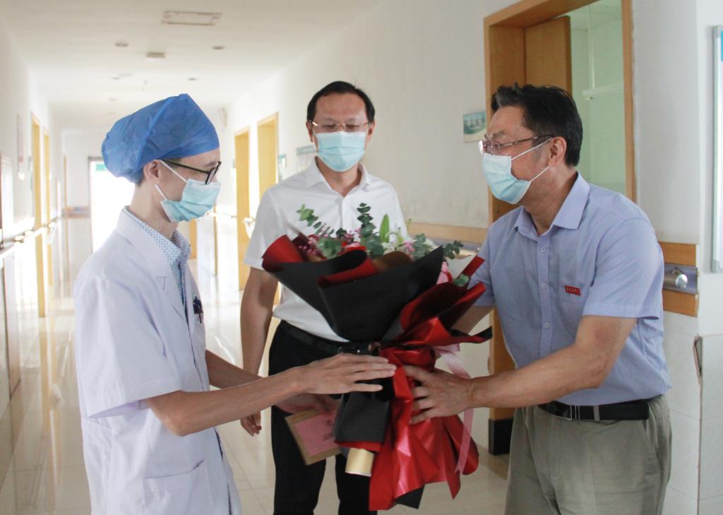 张小康深入一附院医学影像科诊断室、消化内科门诊及泌尿外科病区等,看望慰问了正在一线坚守的医技医师代表卢绍辉、内科医师代表谢军和外科医师代表袁源湖,感谢他们为增进人民健康福祉作出的贡献。张小康希望大家继续弘扬医师“敬佑生命、救死扶伤、甘于奉献、大爱无疆”崇高精神,在严格落实疫情防控工作要求的同时做好日常诊疗工作,在服务好病友的同时保重自身健康,努力为人民群众提供更加优质、安全、高效的健康医疗服务,奋力描绘医院跨越式高质量发展的新篇章。