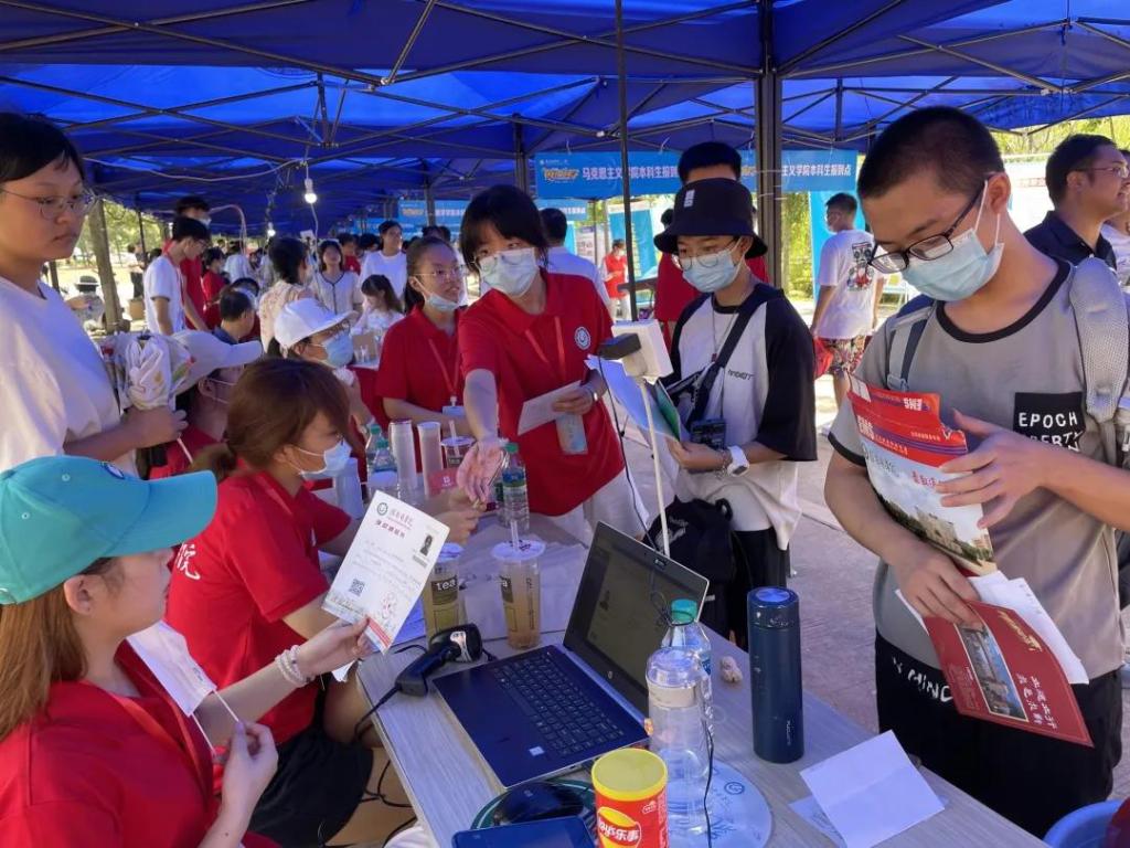 张小康不时亲切地与新生交流,热烈欢迎他们来到赣医,请他们安心在校学习生活,学校将竭尽所能做好服务工作,并请他们及时向家长报平安。张小康还愉快地与新生合影留念,送给新生最美好的入校记忆。