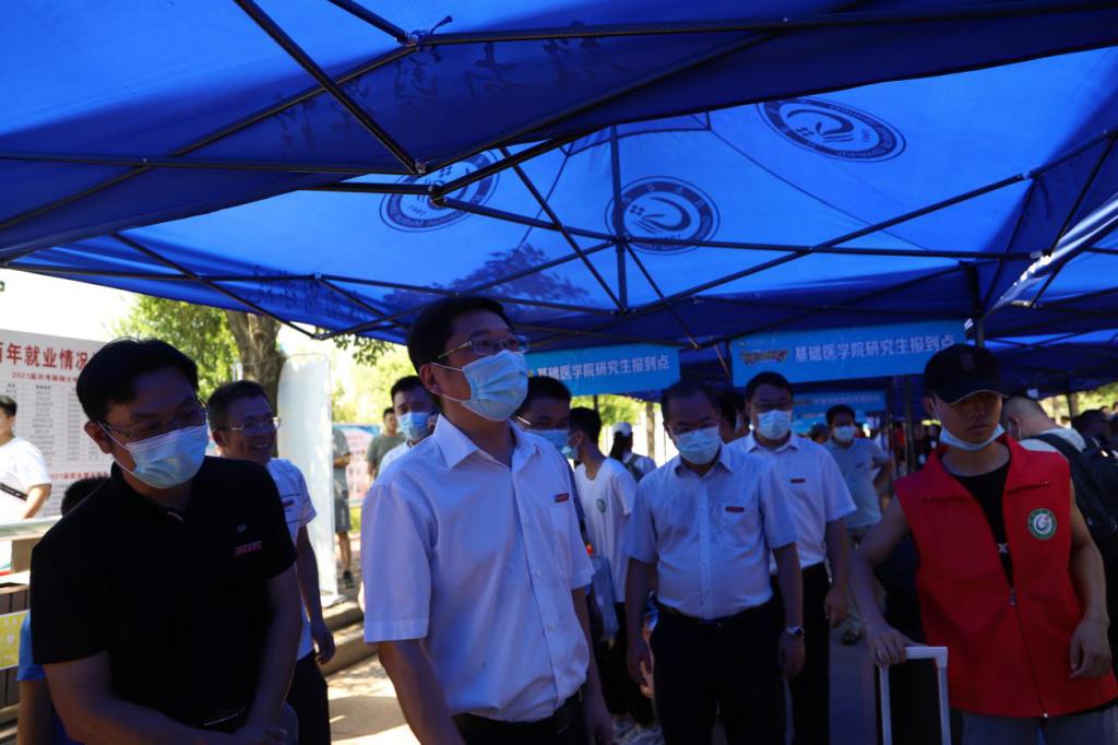 张小康一行深入各学院、各部门(单位)迎新点,与大家亲切交谈,了解新生报到情况,叮嘱大家在热情周到服务新生的同时,要切实做好疫情防控工作,确保迎新工作安全、有序。